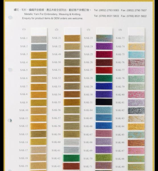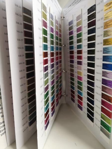 Каталог цветов нитей Sakura Thread (метализированые)-это вся палитра цветов и видов, которые есть в наличии или доступны под заказ. Образцы в каталоге полностью соответствуют цветам и текстуре нитей. Разнообразие цветов и их оттенков поражает!
