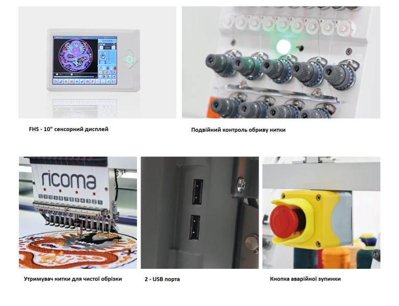 Вышивальная машина RiCOMA FHS-1212, это высокоскоростная 12-головая (по 12 игл на каждую вышивальную голову) вышивальная машина с "плоской платформой" и конструкцией "all servo". В серии FHS доступны к заказу машины вплоть до 30 голов, 15 игольчатый вариант, и машины с нестандартными полями вышивки, до 120 * 150 см на каждой голове. Отдельно под заказ вышивальные машины RiCOMA серии FHS могут быть на заводе доукомплектованы устройствами для пришивания блесток-пайеток, пришивания шнура, шитья махровой или тамбурной строчкой и устройством для удержания нити во время обрезки.